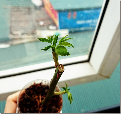 - 3 bạn còn lại đến nay có vẻ vẫn sống vui, sống khỏe. Đặc biệt là có một bạn lớn bật hẳn lên so với hai bạn còn lại. Có lẽ là do bạn ấy béo tốt nhất trong số các cành được giâm